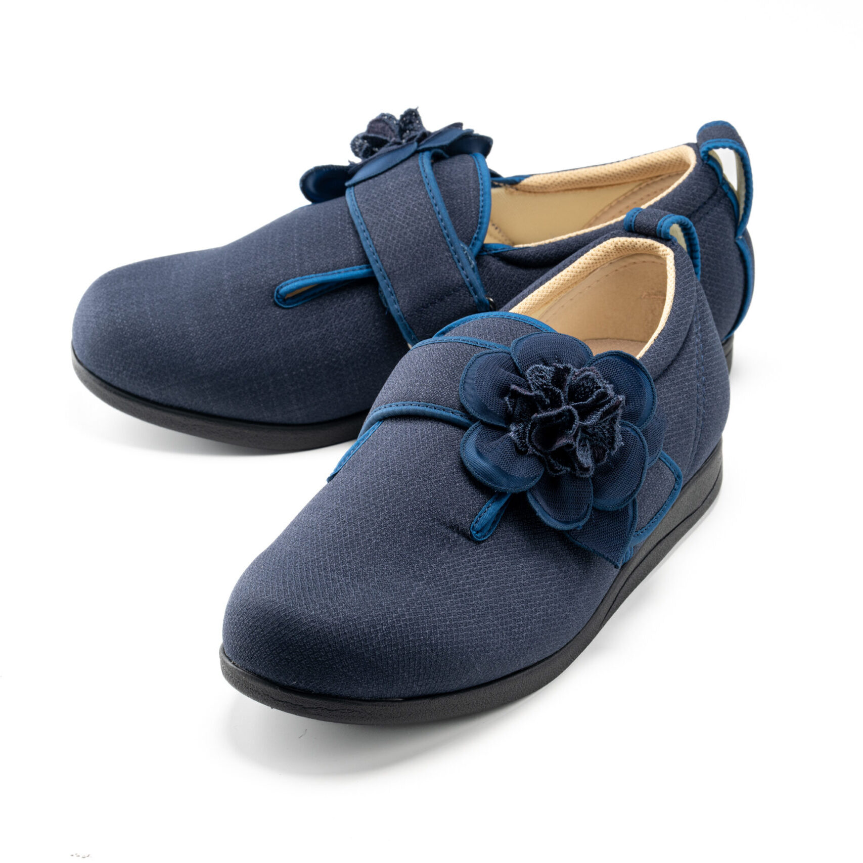 インパクトのあるダリアの花をあしらった存在感のある一足。立体的で足元のおしゃれを楽しんでいただけます。